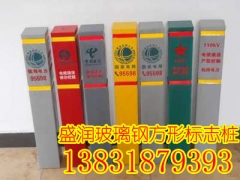 2、玻璃钢标志桩产品表面文字用特种丝印及凹型处理,一次着色固化成型。