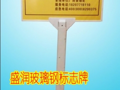 2、玻璃钢标志桩产品表面文字用特种丝印及凹型处理,一次着色固化成型。