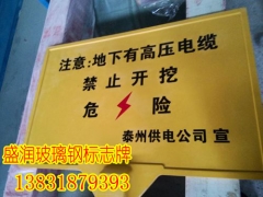 2、玻璃钢标志桩产品表面文字用特种丝印及凹型处理,一次着色固化成型。